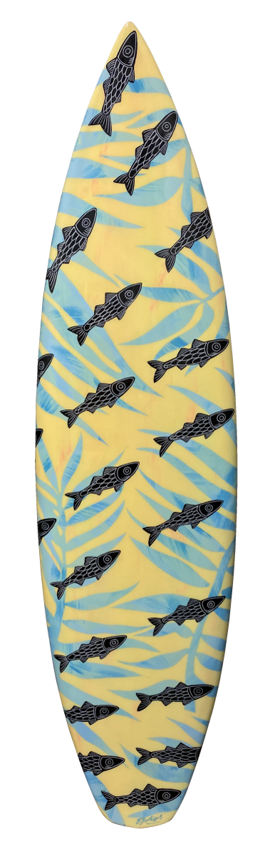 Although the surfboard shape is meant to be functional, it’s not meant to be surfed on, but to be displayed as an art piece.